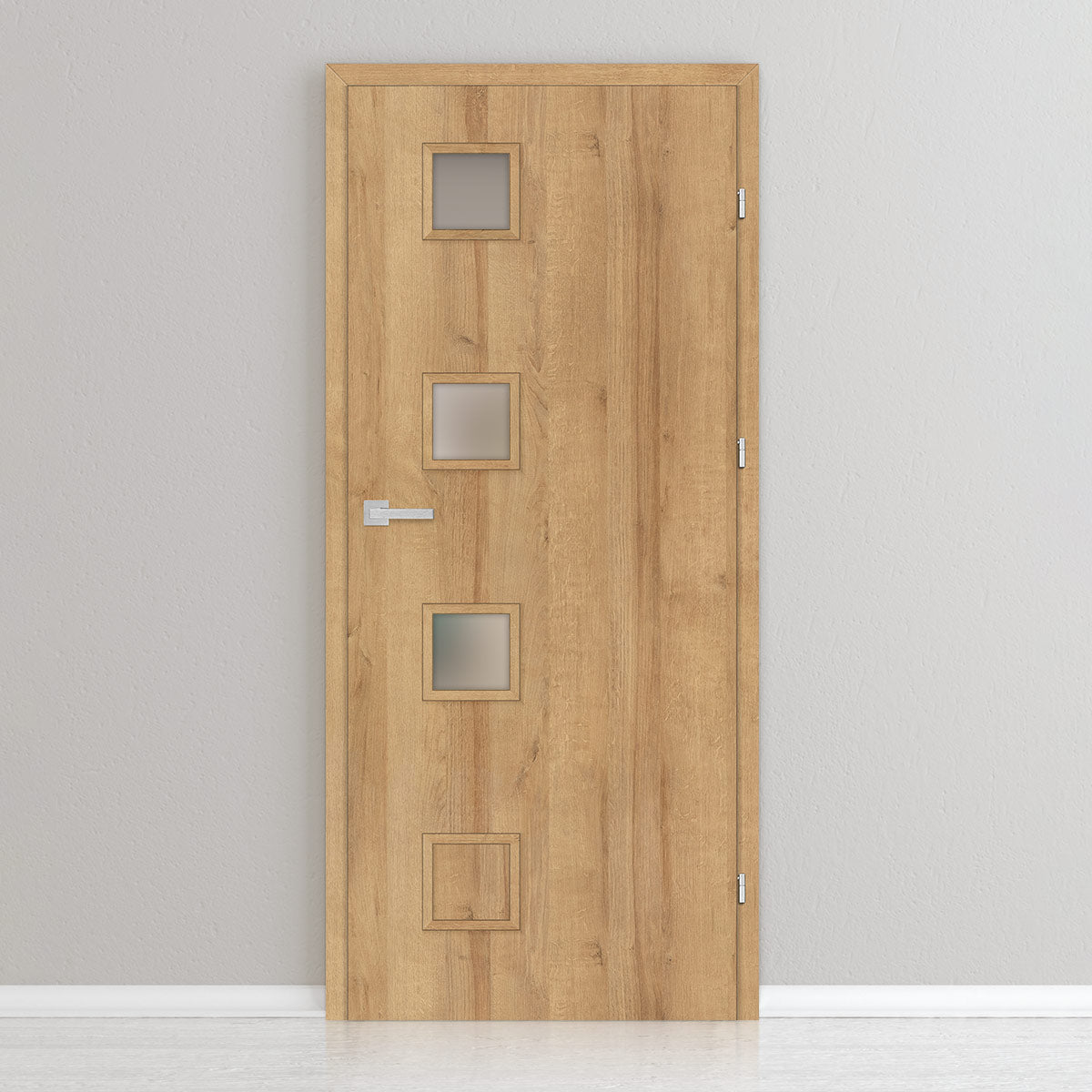 • ръб (завършване по технология стандарт или безфалцово) покрит с лента в цвета на крилото на вратата или опционално в черен цвят, гладък (в декор ДЪБ НАТЮР НАПРЕЧЕН PREMIUM черен ръбо с напречна структура)